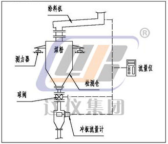 干燥的散裝固體物料自由落體沖擊到傳感檢測板(沖板)上后,傳感檢測板產(chǎn)生機(jī)械偏移。然后散裝物料流連續(xù)而無阻礙的通過。即:由于沖擊力與傳感檢測板具有一定角度,故該力分解成一個水平分力和一個垂直分力。垂直分力由變送器的機(jī)械結(jié)構(gòu)克服而不起作用,而水平分力有一個差動傳感器(線性可調(diào)差動變送器),這個信號經(jīng)與之相連的積算儀檢測和處理,得出瞬時流量和累積流量。