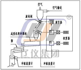 本儀表由(一次表)粉體沖量式流量變送器;(二次表)粉體沖量式流量儀;穩(wěn)流裝置(一般情況下,由生產(chǎn)廠指導(dǎo)用戶設(shè)計、制造)三部分組成(需流量調(diào)解時應(yīng)配流量調(diào)節(jié)器),系統(tǒng)配套見下圖