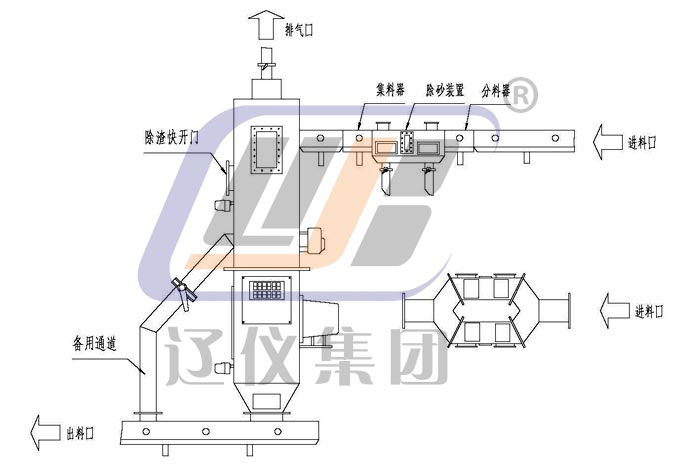 新鮮氧化鋁經(jīng)風(fēng)動(dòng)溜槽進(jìn)入本系統(tǒng)。經(jīng)過分料器將物料分為兩路,分別進(jìn)入除砂裝置,進(jìn)行除砂后匯入集料器進(jìn)入集料箱,在此除渣。氣體由排氣口引出,物料堆積到料位計(jì)時(shí),開關(guān)控制給料器給料,沖板流量計(jì)開始計(jì)量,流量積算儀顯示瞬時(shí)流量、累計(jì)流量。流量大小可根據(jù)實(shí)際生產(chǎn)需要通過流量調(diào)節(jié)器設(shè)定,給料器自動(dòng)調(diào)節(jié)。當(dāng)集料箱無料時(shí),料位開關(guān)控制給料器自動(dòng)關(guān)閉。該過程消除了高壓風(fēng)對(duì)沖板流量計(jì)的影響。物料經(jīng)沖板流量計(jì)的計(jì)量后進(jìn)入下溜槽,直到凈化系統(tǒng)。當(dāng)下溜槽發(fā)生堵料堆積到下料位計(jì)時(shí),料位開關(guān)控制給料器關(guān)閉,避免下溜槽物料越堆越多,保持溜槽順暢,使生產(chǎn)有效均衡進(jìn)行。